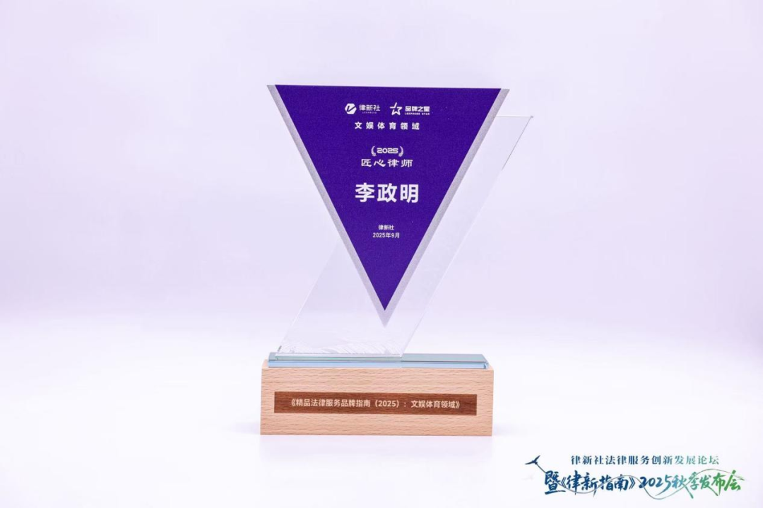 2025年9月7日,“律新社法律服务创新发展论坛暨《律新指南》2025秋季发布会”在中国深圳举行。本次发布会上,律新社《精品法律服务品牌指南(2025):文娱体育领域》隆重发布。中伦文德律师事务所执委、高级合伙人、ADR多元争议专业委员会主任李政明律师凭借其在文娱体育领域的卓越表现,荣获“律新社2025年度文娱体育领域品牌之星·匠心律师”称号。