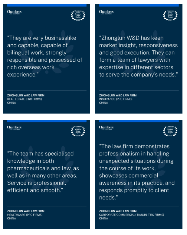 2025年1月16日,国际权威法律评级机构钱伯斯(Chambers & Partners)公布了《大中华区指南2025》(Greater China Region 2025)榜单。中伦文德律师事务所凭借着雄厚的专业实力与卓越的行业口碑,多个业务领域、多位律师获得推荐。
