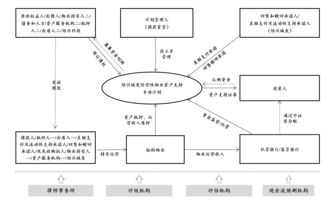 在本项目中,绍兴市科技产业投资有限公司作为原始权益人,绍兴市城市发展集团有限公司作为差额支付承诺人/回购和赎回承诺人,上海国泰君安证券资产管理有限公司担任计划管理人,中泰证券股份有限公司担任销售机构,北京市中伦文德律师事务所提供全流程法律服务与合规支持。