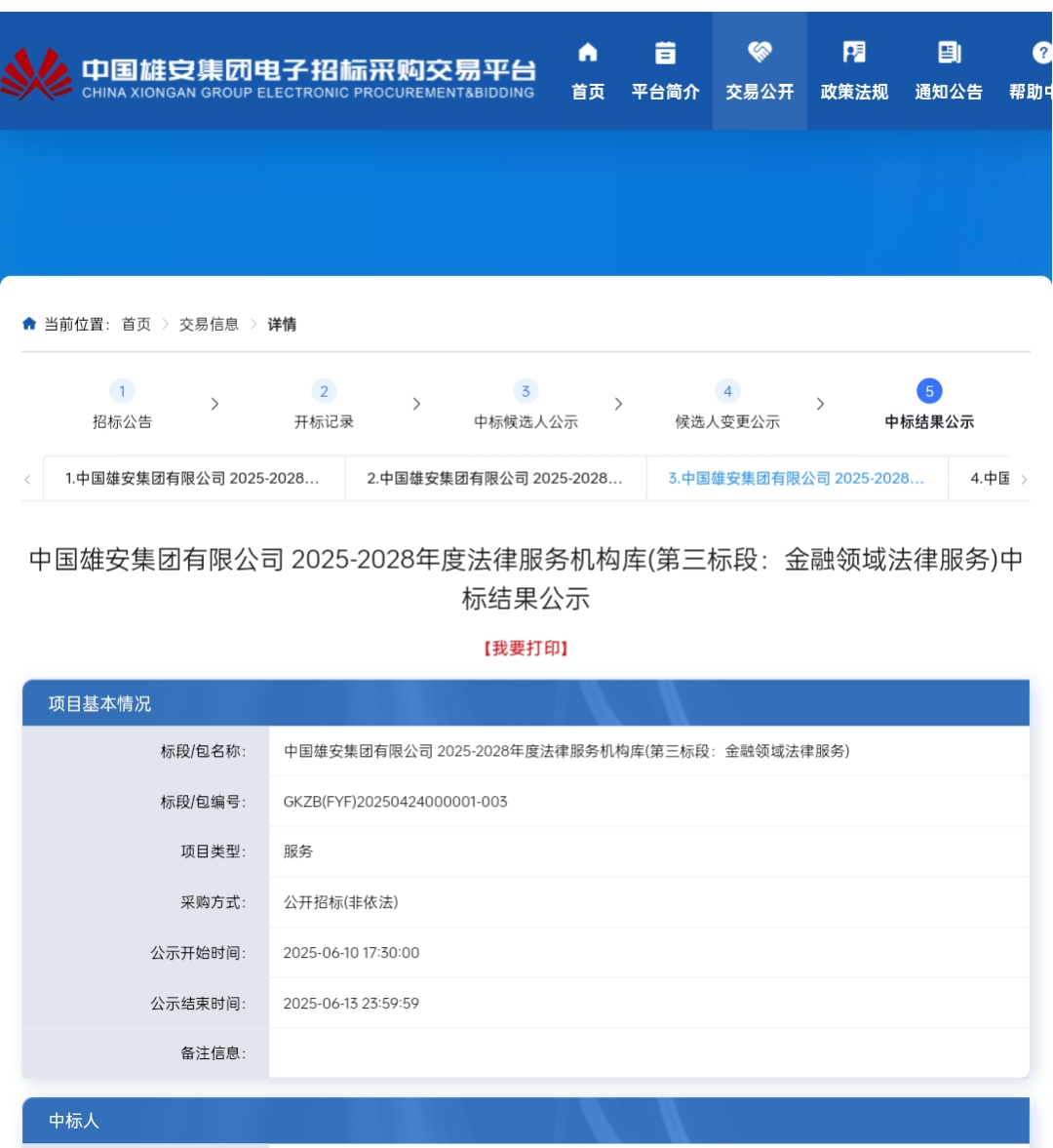 近日,北京市中伦文德律师事务所凭借深厚的专业素养与丰富的实践经验,成功入选中国雄安集团有限公司2025-2028年度法律服务机构库,担任中国雄安集团有限公司法律服务供应商,为其提供金融领域法律服务。本次入选代表了中国雄安集团有限公司对中伦文德综合实力、专业能力的认可,充分彰显了中伦文德在该业务领域的卓越的能力和在业界的良好口碑。