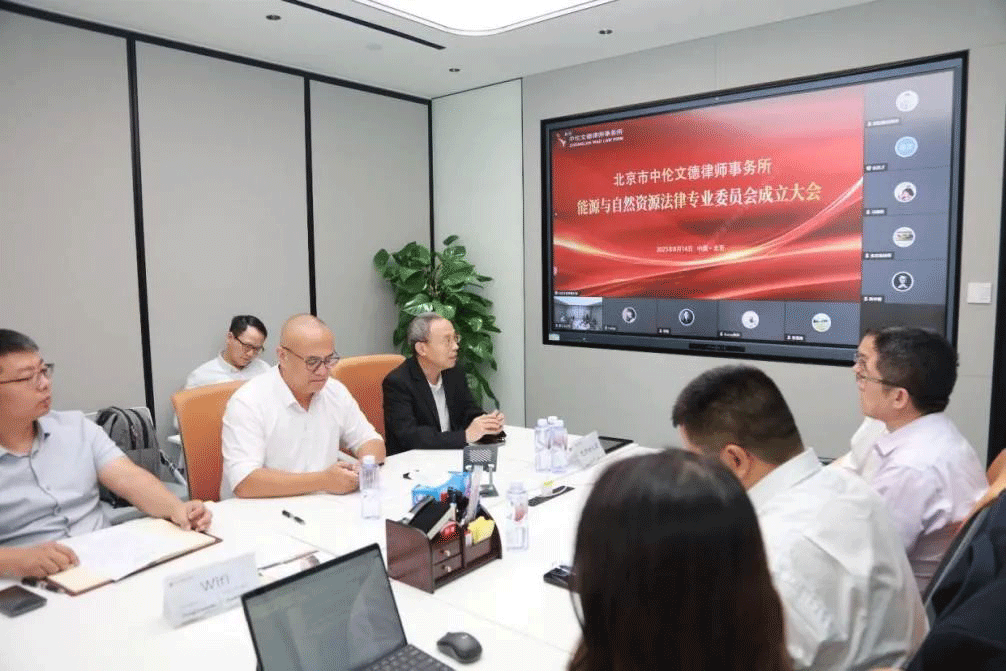 2025年8月14日下午,北京市中伦文德律师事务所能源与自然资源法律专业委员会(以下简称"专委会")成立大会于北京总所正式召开。本次会议采用线上线下相结合的方式,实现总所与分所委员联动参会。大会由专委会筹备组成员董萌律师主持,事务所主任夏欲钦律师,执委会主任、专业化建设分管常务理事李敏律师,天津分所主任、专业化建设分管常务理事温志胜律师,以及来自北京总所与各分所的专委会委员逾三十人共同与会。
