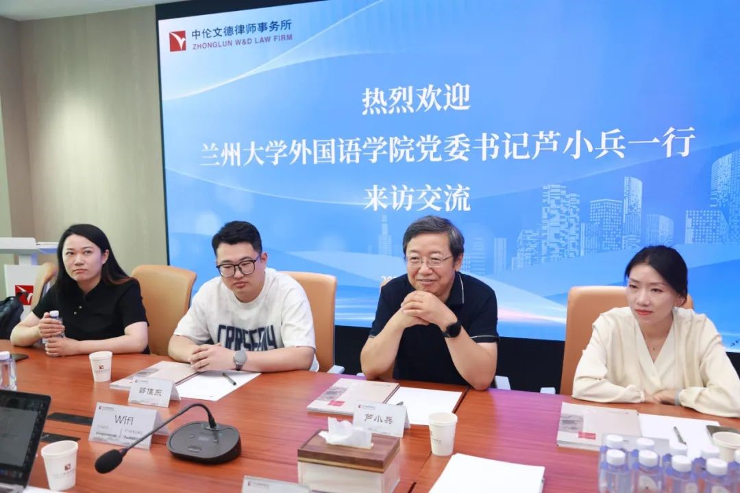 2025年8月14日下午,兰州大学外国语学院党委书记芦小兵、党委副书记方艳、专职辅导员郭佳东一行到访北京市中伦文德律师事务所(以下简称“事务所”或“中伦文德”)参观交流。中伦文德律师事务所创始合伙人、兰州大学校友陈文律师,中伦文德律师事务所主任夏欲钦律师,事务所副主任、党委副书记胡高崇律师,高级合伙人、兰州大学校友许波律师,以及中信建投证券股份有限公司企业家办公室负责人刘雯等共同出席此次交流会活动,双方围绕深厚历史渊源、人才培养及未来发展蓝图展开了深入探讨。
