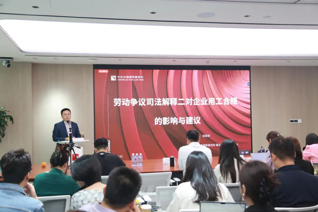 2025年9月26日,北京市中伦文德律师事务所副主任、高级合伙人胡高崇律师以“劳动争议司法解释二对企业用工合规的影响与建议”为主题,举办专题讲座。本次讲座响应行业对新规解读的迫切需求,吸引了众多企业客户、律所合伙人及律师积极参与,线下会场座无虚席,线上亦同步开放了直播通道供远程参会。