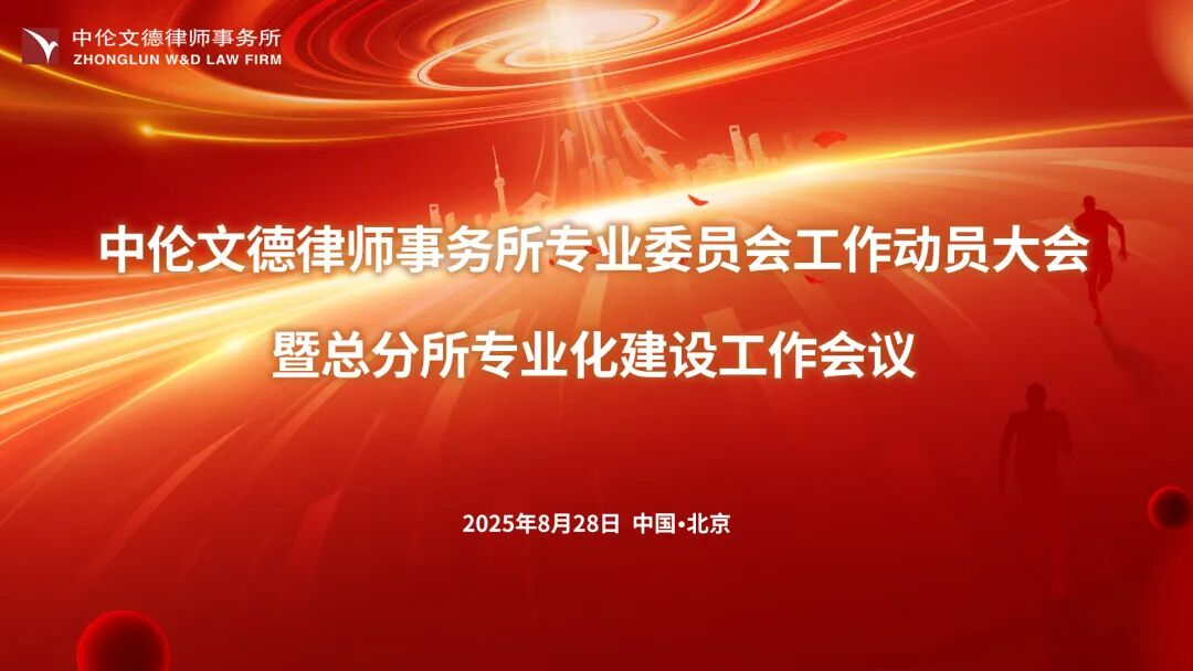 2025年8月28日下午,北京市中伦文德律师事务所(以下简称“事务所”或“中伦文德”)专业委员会工作动员大会暨总分所专业化建设工作会议在北京总所综合会议室及线上平台同步召开。作为各专业委员会成立后的首次全体班子成员会议,本次大会系统部署了总分所专业化建设工作,明确了专委会履职方向,标志着中伦文德专业化发展进入全新阶段。