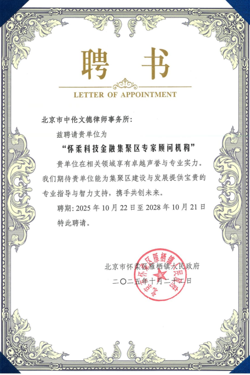 近日,在多方鼎力支持和信任下,北京市中伦文德律师事务所获北京市怀柔区雁栖镇人民政府正式聘任,成为“怀柔科技金融集聚区专家顾问机构”。该项目由中伦文德北京总所合伙人范君艳律师牵头负责。