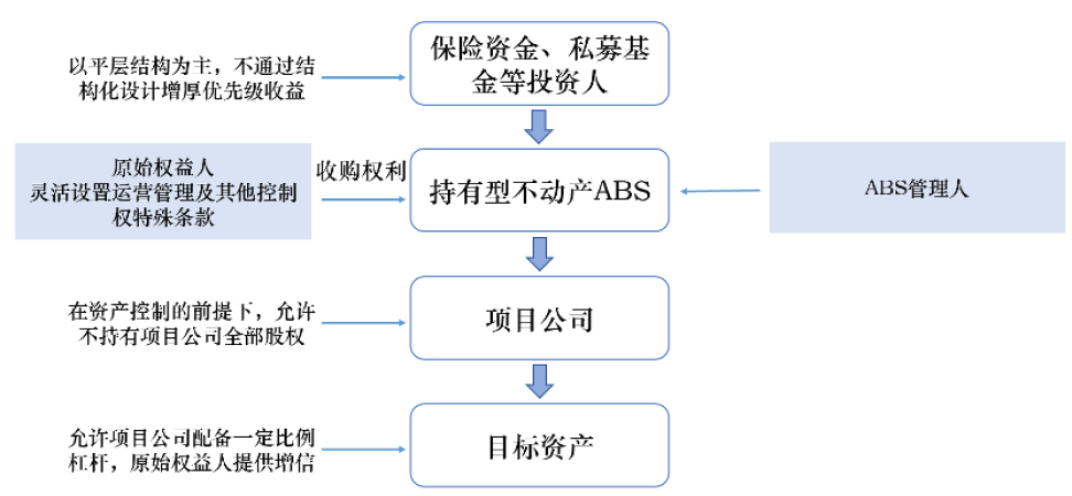 结构设计 | 1.鼓励以平层结构为主,不通过结构化设计增厚优先级收益 2.在资产控制的前提下, 允许不持有项目公司全部股权 3.允许项目公司配备一定比例杠杆,允许原始权益人为项目公司借款提供增信以提高产品收益水平 |